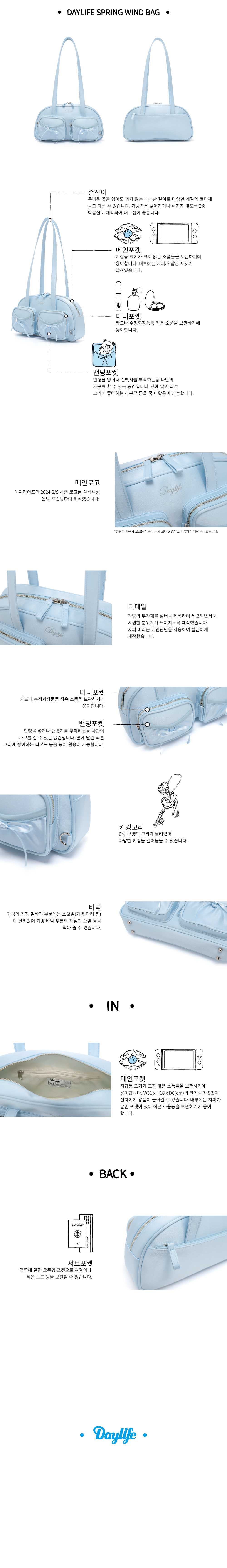 [HANA AND ALICE IN SPRING] 데이라이프 Spring 새틴 시리즈의 'Spring wind 숄더백'입니다. 리본과 셔링이 달린 러블리한 포켓이 포인트이며,새틴 원단을 사용하여 페미닌한 분위기를 연출 하실 수 있습니다. 은은한 광이 나는 게 특징이며 외부, 내부 수납공간이 넉넉하여 데일리로 들고 다니기에 편한 숄더백입니다. 컬러는 핑크, 스카이블루, 블랙 세 가지 색상으로 제공됩니다.